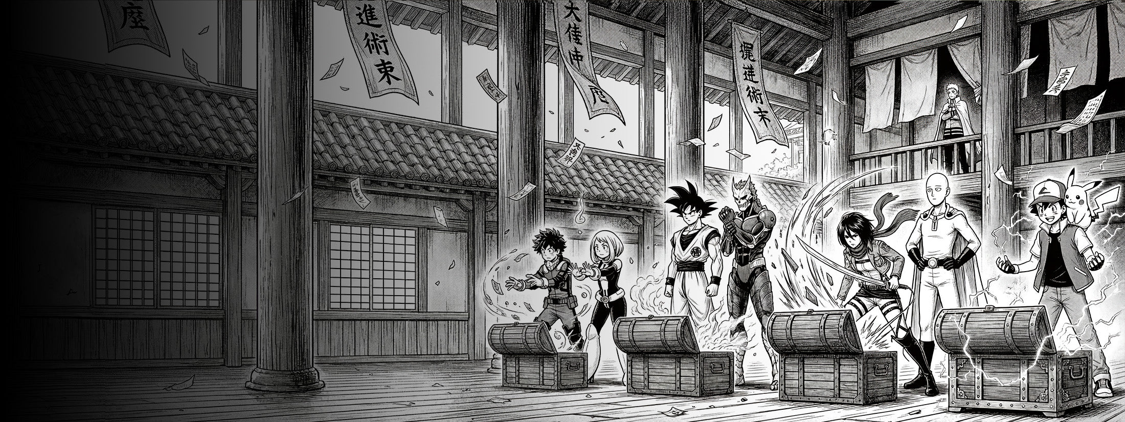 Boîtes surprise en 4 niveaux avec des articles provenant de l'univers de l'anime. Chaque niveau te propose plus de merch anime cool.