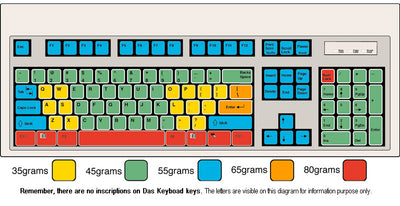 Bei den meisten Tastaturen benötigst Du für jede Taste gleich viel Druck zum Tippen. Die Tasten dieser Tastatur haben 5 verschiedene Druckstärken (35g-80g), die so angeordnet sind, dass sie der Stärke des entsprechenden Tippfingers entsprechen. Dadurch lässt es sich deutlich entspannender tippen. Um einen Eindruck von der Druckverteilung zu erhalten, kannst Du Dir die weiteren Produktbilder angucken.