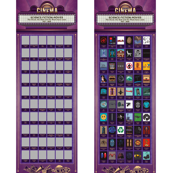 Dadurch wird das Poster selbst nach 60 Filmabenden, wenn alles freigelegt ist, nicht langweilig: Am Ende hast du einen dekorativen, bunten Überblick über die wichtigsten Meilensteine der Science Fiction-Filmgeschichte!