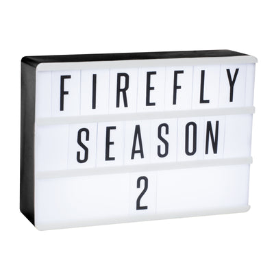 The first step in the right direction is the Illuminated message board. On the front, you can slide letters, numbers and signs into rails in the style of classic cinema boards to indicate which movie you want to show next in your home cinema. The board is also illuminated at the touch of a button, so your potential audience knows what's going on even in the dark of night. Of course, you can also write greetings or similar messages with the 85 characters included ;)