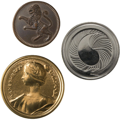 Each coin was produced using traditional techniques with classic machines, so no two coins are identical. Each coin also contains a booklet with information about the coin and the production process.