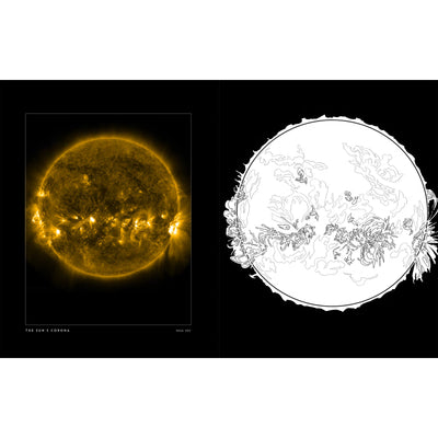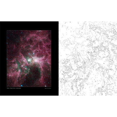 No matter how hard we humans try: The most beautiful artworks are still created by nature! This applies both on Earth and in space. With the “Earth + Space” Coloring Book, you can put your stamp on the infinite expanses of the universe and give new color to over 35 images of planets, galaxies, and more! On each double page, you will find not only the coloring image but also a photo of the respective object from the NASA archive, which can serve as inspiration – but of course, you can also paint the Earth purple, the Moon red, and the Milky Way green-checkered! ;)