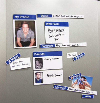 If communication at home, in the shared apartment, or at work mainly takes place over the internet or through an opaque note system, then the Facebook Refrigerator Magnets are just right for you.