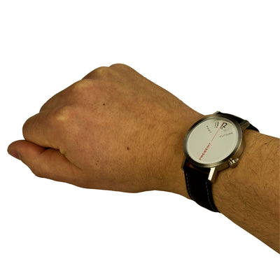 Some people spend a large part of their time dwelling on the past, while others fear the future and thus paralyze themselves. But to live also means to enjoy the essential, namely the moment, the here and now... This beautiful, unique present moment and the thought behind it are united in the Past Present Future Wristwatch with its minimalist design.