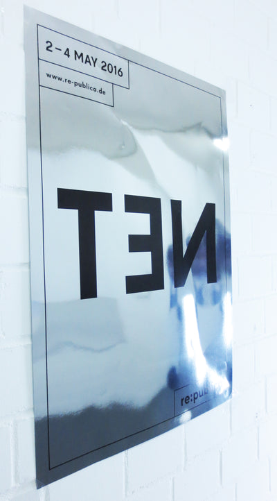 The "TEN", the theme name of re:publica 2016, stands for the tenth edition of the event. Reflected, the lettering forms the word "NET".