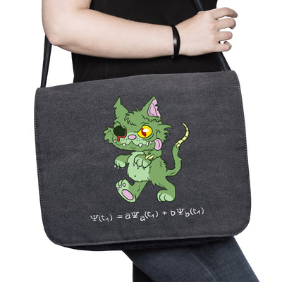 A cat in a state of superposition, that is, alive and dead - both at the same time and yet somehow neither - can only be one thing. A zombie cat! And when is one in two states at the same time? When Schrödinger locks you in a room with an unstable atomic nucleus.