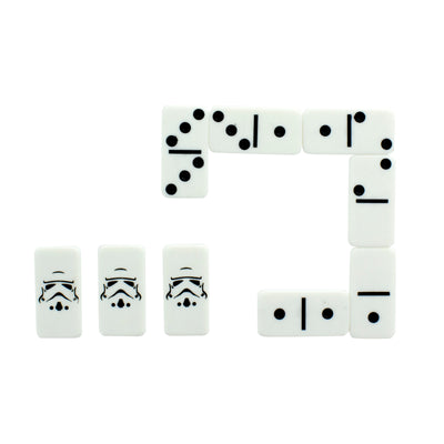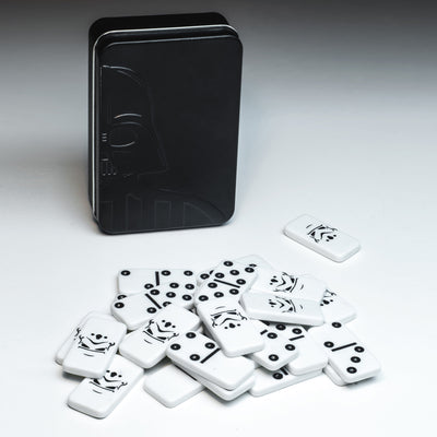 Play dominoes! The Star Wars Galactic Empire Dominos quickly transform the Stormtroopers into dominoes, where only the helmets on the back remind you of the "pride" of the Empire. Even as game pieces, they are still under Lord Vader's command, who keeps an eye on them in the form of an embossed metal tin. If you don't feel like playing "real" dominoes, you can also line up the Troopers excellently and knock them over in a chain reaction. ;)