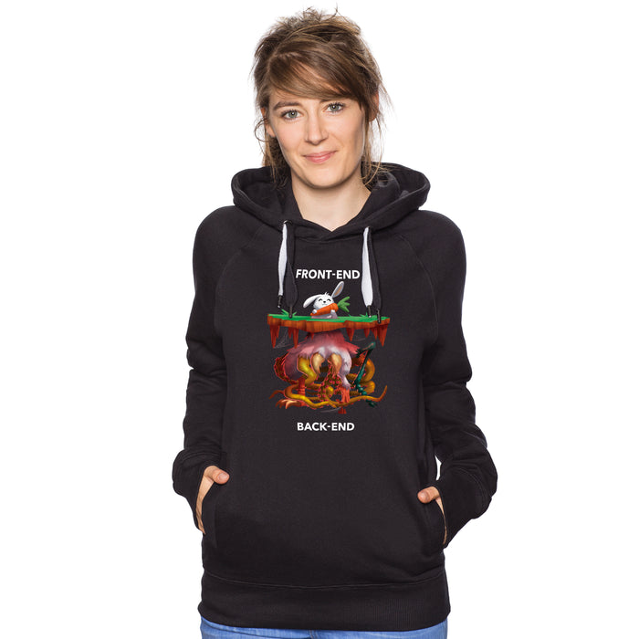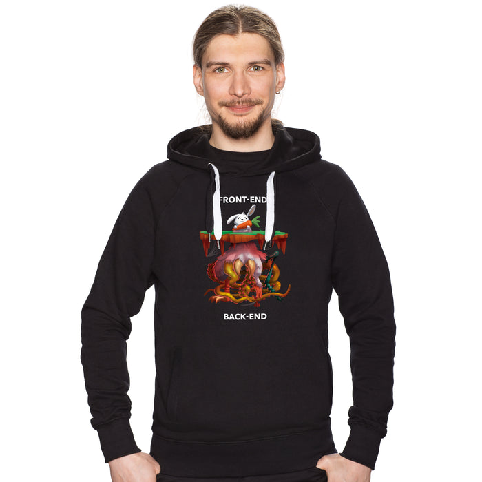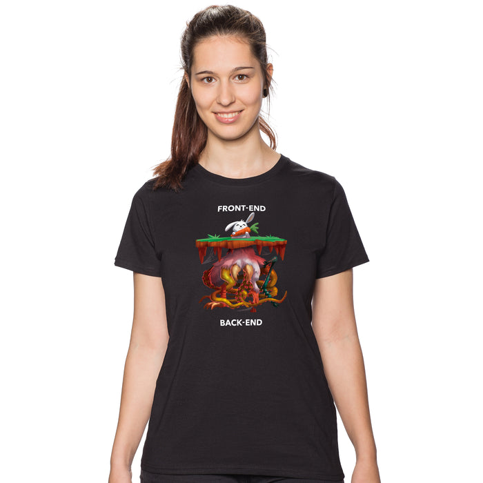 Pues eso, por un lado el bonito conejito que ve el usuario (con su zanahoria y todo) y, bajo la superficie, la pesadilla de bugs que se tiene que comer el programador (si solo es un proyecto casi, casi terminado al 100 % al que hay que limar unos detallitos...).