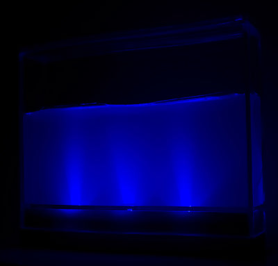 En esta versión especial iluminada, en comparación con el Antquarium normal, se incluye un soporte adicional con LEDs que pueden iluminar el Antquarium desde abajo con luz azul. Para ello, se necesitan 3 pilas de botón LR44, que están incluidas en el paquete. Además, opcionalmente se puede conectar un adaptador de corriente, el cual no está incluido en el paquete.