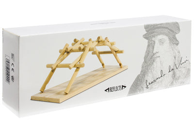 Estas palabras del genio universal Leonardo da Vinci encajan perfectamente con el puente que diseñó. Con este kit de construcción, puedes construir un modelo a escala, ¡y funciona sin pegamento! Las piezas se apoyan mutuamente, por lo que no se necesita fijación adicional, aunque colocarlas juntas requiere algo de práctica a pesar de las ranuras. Originalmente, esta idea estaba destinada principalmente a fines militares, pero no se sabe si alguna vez se utilizó de esa manera.