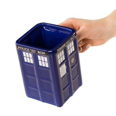 Pero volvemos al té. Porque el extraño viajero del tiempo lo bebe exclusivamente del Doctor Who Tardis Cup. Esta copa es tan inusual como su propietario: es angular (!), Parece una máquina del tiempo y tiene más de 500 ml! El médico nos dijo que era aún mayor desde el interior, al igual que su gran modelo a seguir. ¡Así que rompe tu mosca, un fez y esta copa para la porción adicional wibbly timby timey-shimey!