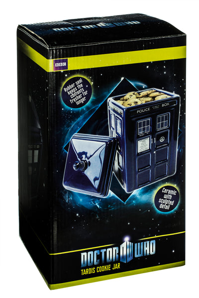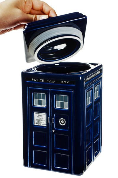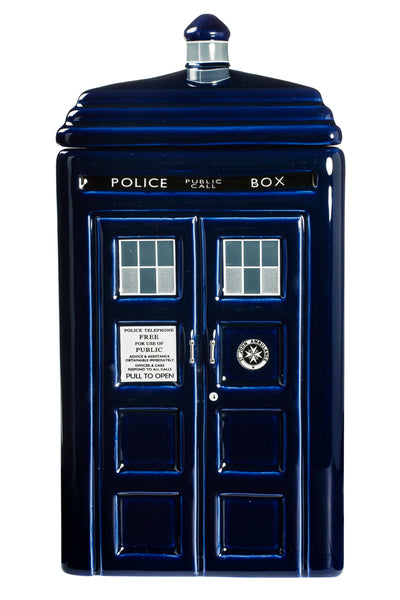 Esta TARDIS (abreviatura de "Renuncia Total a las Dietas Relativas en Tiempo Estelar") de cerámica también se parece a la TARDIS del Doctor y es mucho más grande por dentro que por fuera! Si esto es realmente cierto, tendrás que descubrirlo llenándola de galletas y golosinas y luego comiéndotelas todas.