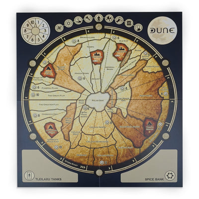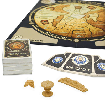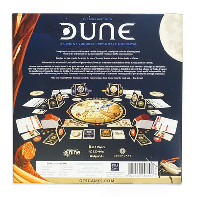 En este complejo Juego de mesa de dunas ¿Puedes usar tu conocimiento de la famosa serie de novelas de Frank Herbert y/o la adaptación cinematográfica de David Lynch para actuar estratégicamente contra tus oponentes? Necesita al menos un máximo de otros cinco compañeros de equipo. Cada uno de ustedes representa una facción política o una casa y debe tratar de hacer cumplir sus intereses a través de la colocación de sus tropas, el uso de especias y las ruedas de batalla cerradas. ¡Te mueves en el tablero en un mapa detallado del planeta del desierto! Todas las cartas de juego y las instrucciones están escritas en inglés.
