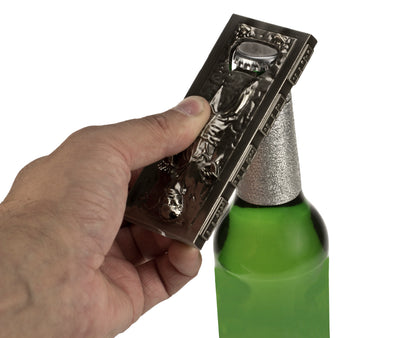 Para abrir su bebida isotónica de la manera más elegante y adecuada para un cazarrecompensas, Boba Fett solo tiene una opción: el Abridor de botellas Han Solo en Carbonita :) Así, cada vez que abre una botella, recuerda uno de sus mayores logros: congelar a Han Solo y luego entregarlo a Jabba the Hutt, lo que le valió 400,000 créditos - 250,000 de Jabba y otros 150,000 de Darth Vader. Si eso no es nada, incluso un cazarrecompensas puede vivir cómodamente por un tiempo y comprar muuuuuchas cajas de cerveza ;)