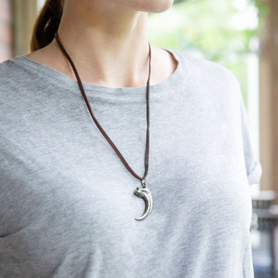 Ellos también tienen garras muy peligrosas, como muestra el Collar con garra de Velociraptor de Jurassic Park, pueden abrir puertas y son muy inteligentes. Con este collar puedes mostrar que sobreviviste a un encuentro con estos rápidos depredadores, o que visitaste la tienda de souvenirs en el Parque Jurásico. Además del colgante, el collar está hecho de una correa de cuero sintético con hebilla, que mide aproximadamente 55 cm de largo.