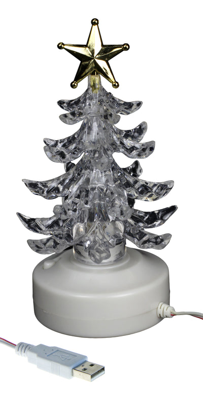 Entonces, el Árbol de Navidad USB iluminado es perfecto para ti: Este bonito pequeño árbol de Navidad de plástico que no pierde agujas se conecta simplemente al puerto USB de tu ordenador - el plástico transparente se ilumina luego con un hermoso degradado de colores en azul, verde y rojo. Con solo presionar un botón, incluso toca villancicos :)