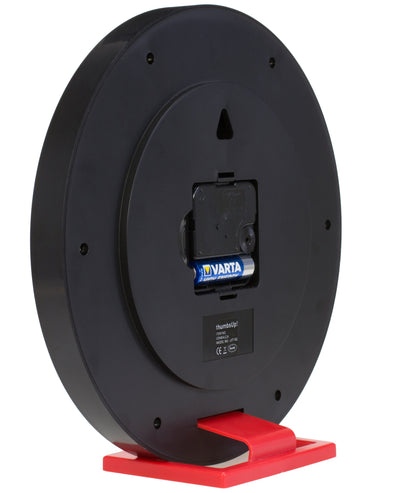El Reloj de Pared Magnetic Ball tiene una ranura en la parte trasera que permite colgarlo en la pared con un simple gancho (el gancho no está incluido). Además, se incluye un soporte rojo a juego con la 'bola-manecilla', que permite colocar el Reloj de Pared Magnetic Ball en el escritorio o en la estantería.