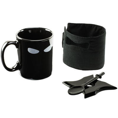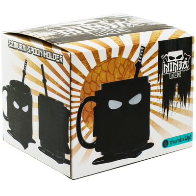 Como un ninja está preparado para todo, ya sean ataques a traición o superficies delicadas, también se incluye una estrella arrojadiza, Shuriken, de cerámica que sirve como posavasos.