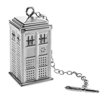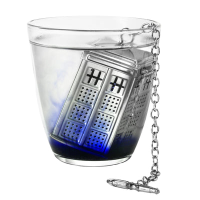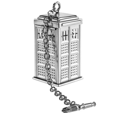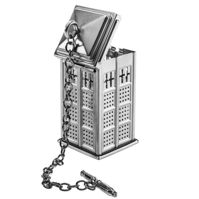 Questo piccolo TARDIS in metallo assicura una dose perfetta. Il tetto può essere aperto e l'infusore per il tè è facile da riempire. Poi basta appenderlo in un contenitore adatto - una brocca di vetro è la migliore, ovviamente - e lasciarlo in infusione per 3-5 minuti. È tutta una questione di spazio e di tempo ;) Tra l'altro, il manico all'estremità della catenella ha la forma di un piccolo cacciavite sonico.