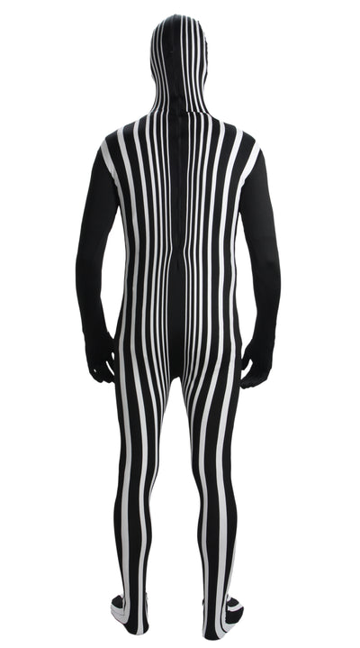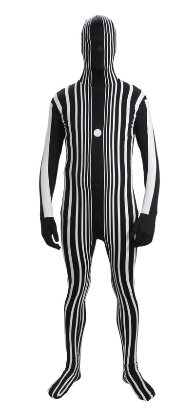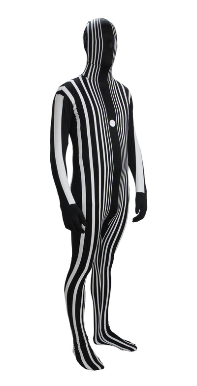 Il costume effetto Doppler è naturalmente traspirante (per non soffocare) e semitrasparente, quindi non andrai in giro alla cieca ma potrai comunque vedere ciò che ti circonda. Puoi anche bere attraverso la tuta! La tuta può essere chiusa con una zip sul retro.