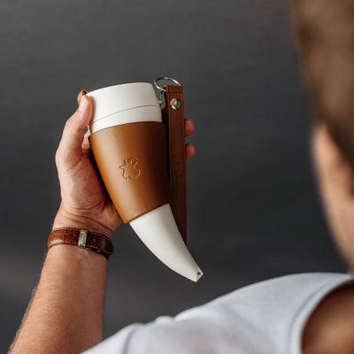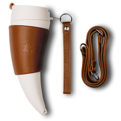Oltre al corno per bere, riceverai anche un manico in pelle che proteggerà le tue dita dal calore e fungerà anche da supporto per il corno, e una tracolla regolabile in finta pelle che potrai utilizzare per appendere la tua Goat Mug con disinvoltura sulla spalla. A differenza dei corni per bere realizzati in vero corno, puoi anche lavarlo in lavastoviglie. Ma non dimenticare di rimuovere prima le parti in pelle ;)