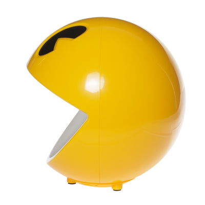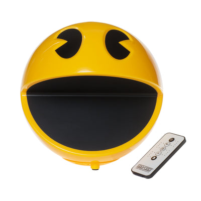 Con il telecomando puoi non solo regolare la luminosità della lampada, ma anche riprodurre 12 suoni originali del classico arcade! Un effetto collaterale positivo: la palla gialla luminosa è garantita per tenere lontani i fantasmi durante la notte ;)