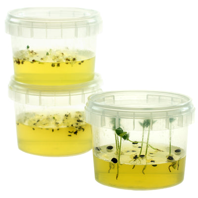 Alle Sets enthalten die nötigen Zutaten für das Gel, Pflanzgefäße, kleine Blumentöpfe, Torfkapseln und natürlich die Samen für ein langes Gärtnerglück.