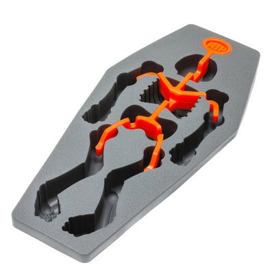 E comunque, questo scheletro è un po' diverso. Invece di farti tremare le ginocchia, è alla ricerca dei tuoi drink. Senza pietà, si avventa sul tuo drink e inizia a ballare beffardo all'interno del bicchiere. Grazie alla struttura in silicone che collega le singole "ossa", lo scheletro esegue un vivace valzer ogni volta che muovi la sua sospensione. Un effetto collaterale positivo: la tua bevanda si raffredda alla temperatura dello Stige in pochissimo tempo. E abbiamo detto che lo scheletro può essere messo a riposare in una bara coordinata? :)