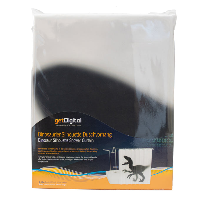 La tenda da doccia con sagoma di dinosauro ti riporta esattamente a quell'epoca. Con questa terrificante apparizione dietro la tenda della doccia, presto non saprai più se si tratta di gocce d'acqua o di sudore che ti cola sulla nuca...