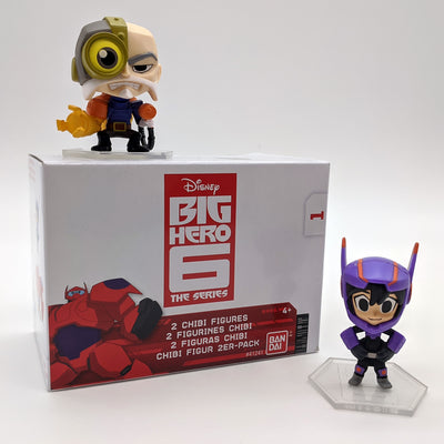 • Enthält zufällig ausgewählte Chibi-Versionen zweier der folgenden Charaktere: Baymax, Baymax (rot), Hiro, Fred, Mochi, Go Go, Baron von Steamer, Obake, Noodle Burger Boy