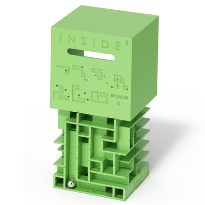 Au moins pour les Inside³ Labyrinth cubes! Ces cubes colorés peuvent paraître insignifiants à première vue, mais ils cachent sept couches de labyrinthes très compliqués à l'intérieur, à travers lesquels tu dois guider une boule de métal. Le plus important : tu ne peux pas voir la boule ni les labyrinthes ! Sans Imagination spatiale et les cartes de chaque niveau sur les cubes tu serais donc très vite perdu ! Tu peux démonter les inserts du labyrinthe, retirer la bille et recommencer.