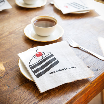Falls Du Dir immer noch Hoffnungen auf ein leckeres Stück Kuchen machst, werden Dich die "The cake is a lie"-Servietten auf den Boden der Tatsachen zurückbringen. Denn diese 20 bedruckten Papierservietten zeigen recht deutlich, dass es keinen Kuchen geben wird. Aber das kommt davon, wenn man wildfremden KIs vertraut...