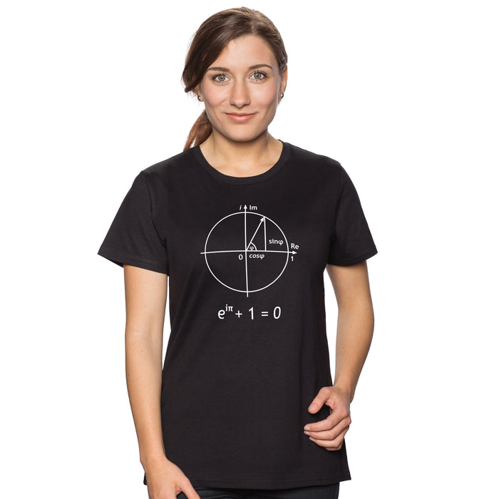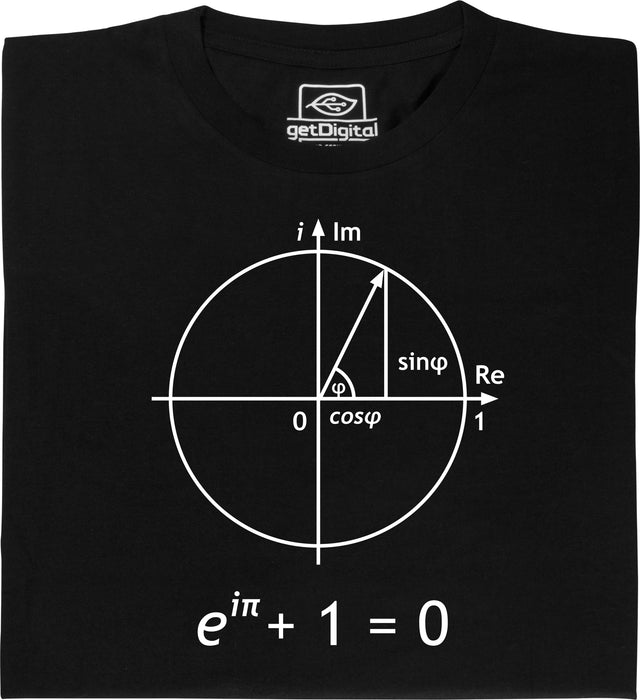 Daarom hebben we het eenheidscirkel T-shirt gemaakt, dat naast de gelijknamige eenheidscirkel ook een opnieuw gevormde versie van de identiteit van Euler laat zien. Wiskunde-experts kunnen genieten van de pure perfectie van de eenheidscirkel, terwijl nieuwkomers nu een handig spiekbriefje op hun lichaam kunnen dragen om hen te herinneren aan de basisprincipes van goniometrie. Twee vliegen in een klap!)