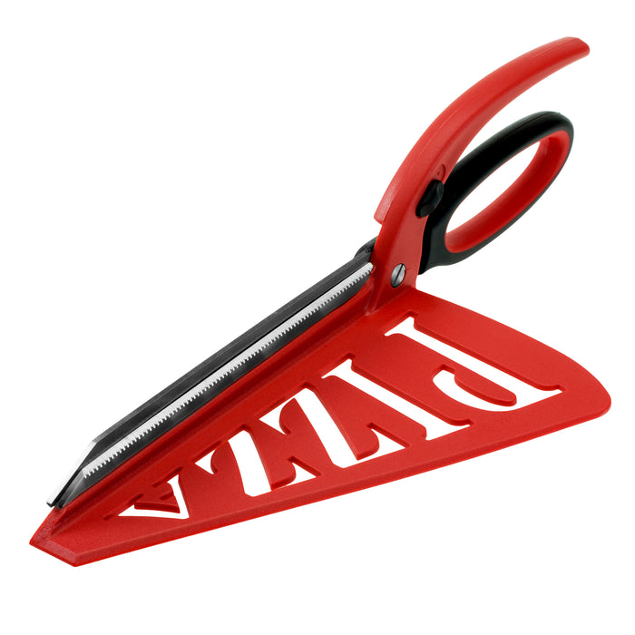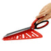 Om gemakkelijk te knippen heeft de schaar een veer die hem open drukt (als een rozenschaar). Als je de schaar niet gebruikt, zit het bovenste blad vast zodat alles veilig kan worden opgeborgen. De pizzaschaar is bestand tegen temperaturen van meer dan 200 °C en dankzij de snelle snijwerking is de pizza nog warm als hij op je bord ligt. :)