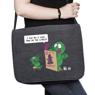 Falls Dich die Androhung des Purpurtentakels, die WELT ZU EROBERN, in ähnliche Begeisterung versetzt wie den kleinen Cthulhu, dann solltest Du den Anhängern deines Kultes nahelegen, dieses T-Shirt der nächsten Opfergabe beizulegen. Und wer weiß, vielleicht besänftigt das Motiv eines Tages auch den Großen Alten, wenn er tatsächlich mit der Unterjochung der Erde beginnt...
