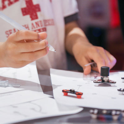 La fonction de base du Circuit Scribe est aussi simple que géniale. Le roller, qui ressemble à un stylo à bille normal, contient de l'encre conductrice à base d'argent (l'argent est l'élément ayant la plus grande conductivité électrique). Tu peux ainsi dessiner des circuits fonctionnels sur n'importe quelle feuille de papier ordinaire. Cela donne un coup de vieux aux câbles tordus et pliés et aux fiches bananes des cours de physique. D'ailleurs, le Circuit Scribe a été développé en mettant l'accent sur l'enseignement et est recommandé à partir de 13 ans.