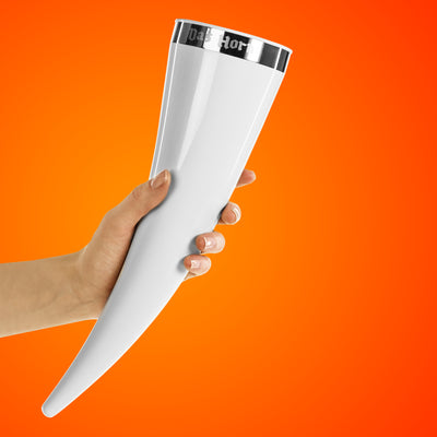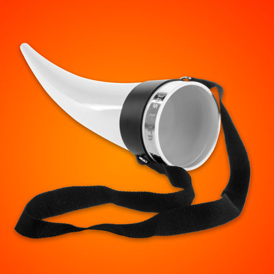 L'inconvénient d'une corne à boire classique est qu'elle nécessite un bovin qui donne sa corne. Pour le plus grand plaisir de tous les défenseurs des animaux, des végétariens et des buveurs de bière, c'est La corne C'est pourquoi elle est en plastique. Ainsi, contrairement à la vraie corne ou à la corne artificielle, elle est facile à nettoyer, même au lave-vaisselle ! Pour avoir les mains libres tout en ayant la boisson de ton choix toute la journée, tu peux accrocher le cor autour de ton cou avec la sangle fournie. Cela te donne aussi une touche de danger ;) Les cornes ne se tiennent pas très bien toutes seules, à moins que tu ne les enfonces dans un client de bar hostile (ce que nous déconseillons).