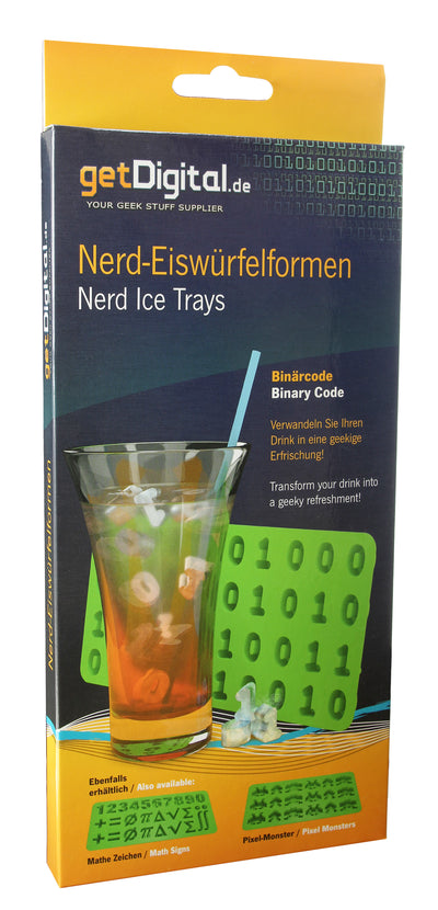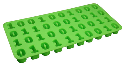Tu n'as pas besoin d'aller chercher un gros bloc de glace sur la montagne la plus proche et de le travailler avec un marteau et un ciseau pour obtenir des glaçons en forme de 1 et de 0. Facilite-toi la vie avec le moule à glaçons Code binaire ! Avec le moule en silicone, tu peux fabriquer un total de 40 glaçons (17x1, 23x0). Remplis-le simplement d'eau (ou par exemple de jus d'orange) et mets-le au congélateur.