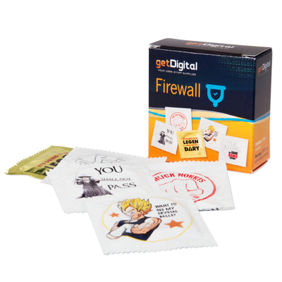 • Deux sets de préservatifs avec des impressions geek sur les étuis;- ; Chaque set contient cinq pièces avec des motifs différents;- ; Set Firewall avec un design nerd, Set Energy Shield avec un design intergalactique.