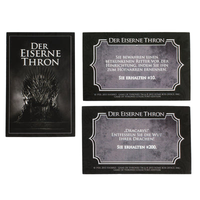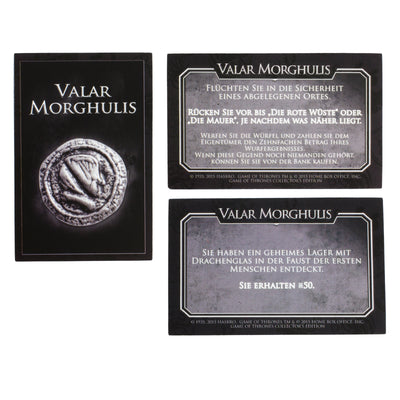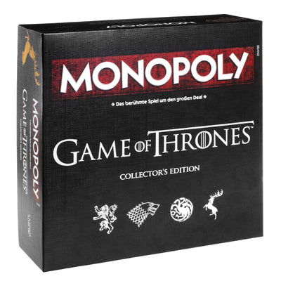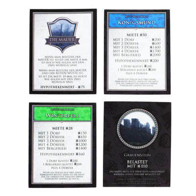 Le principe du jeu est le même que celui du célèbre Monopoly, sauf qu'il montre enfin son vrai visage dans le monde sombre de Westeros et Essos. Il s'agit de la version allemande du jeu.