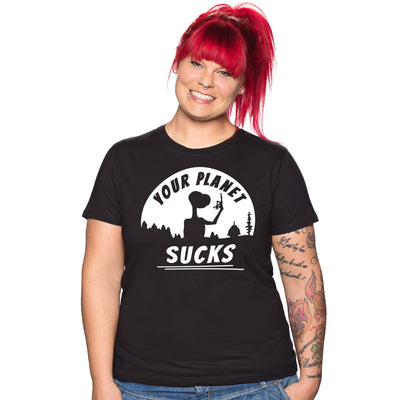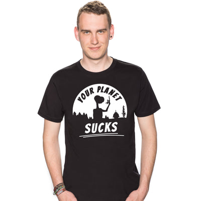 Si tu t'es toujours demandé ce qu'un extraterrestre penserait de la Terre s'il atterrissait ici par accident – le T-shirt Your planet sucks donne la réponse.