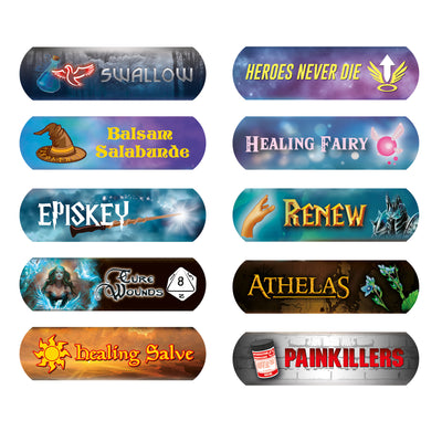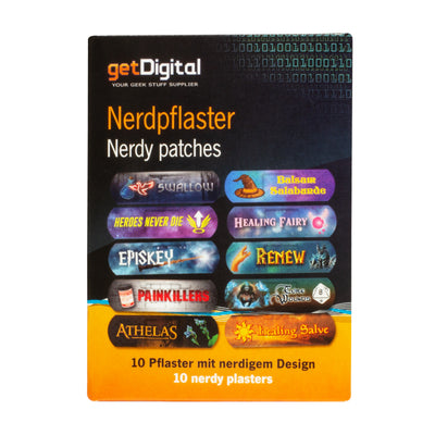 Avec les Pansements nerd getDigital Tu n'as pas besoin de te souvenir de quoi que ce soit ! Sur les dix patchs qui t'attendent dans ce kit, tu peux écrire ce que tu veux. Dix méthodes de guérison différentes admirer des jeux vidéo connus, des films, des jeux de rôle Pen-and-Paper et autres. Il suffit de retirer le film de protection du verso, de coller le pansement sur la blessure et de le laisser faire sa magie. Quoique : pour les sceptiques, nous avons même inclus un pansement "Painkillers" qui fait appel à la médecine moderne. La prochaine fois que quelqu'un demandera un guérisseur, tu seras donc bien équipé. ;)
