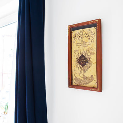 Pour que M. Filch ne puisse plus enfermer ta carte personnelle du rôdeur dans son bureau, tu devrais désormais la garder dans le "La vitrine de la carte du chasseur de rhum Range-la dans un endroit sûr. Cette boîte de rangement en bois de haute qualité est richement décorée et dispose d'un couvercle à l'avant qui s'ouvre comme une fenêtre. À travers la vitre en plexiglas, tu peux admirer ton bijou sans l'exposer à des dangers tels que des éclaboussures de bière au beurre, des hiboux déchaînés ou des malédictions. Et même les lutins de Gringotts se casseraient les dents sur les aimants magiques qui maintiennent le couvercle fermé !