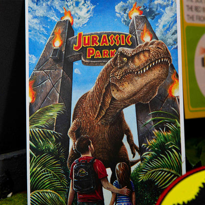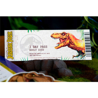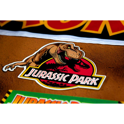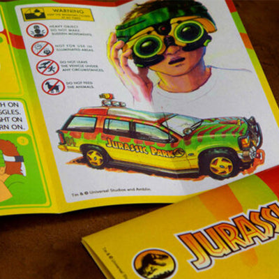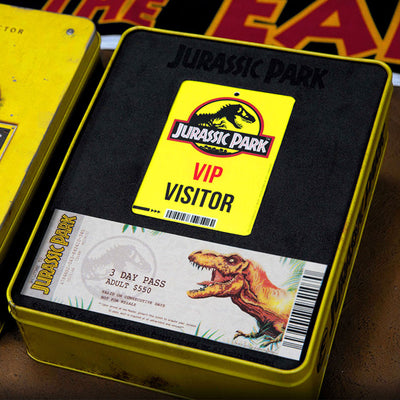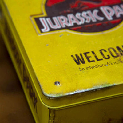 Prépare-toi pour ton premier jour à Jurassic Park à l'aide de la licence officielle Kit de bienvenue Jurassic Park. Dans une boîte métallique exclusive, tu trouveras de nombreux articles de fans et des objets utiles pour ta première visite au Dino Park ! En plus des choses évidentes comme le billet d'entrée, la lettre de bienvenue et le plan du site, tu disposeras, en tant que propriétaire de cette boîte, de toutes sortes de souvenirs comme une bannière, des autocollants, une carte postale ou des badges dino. Une collection aussi variée et colorée ne se trouve pas tous les jours, à peu près aussi souvent qu'un vélociraptor apprivoisé. :D