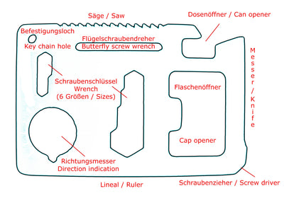 Cet outil génial offre 9 fonctions, mais il est tout de même à peine aussi grand qu'une carte de crédit, de sorte que vous pouvez par exemple le ranger facilement dans votre portefeuille. Il est entièrement fabriqué en acier inoxydable et est donc très robuste. Il contient les outils suivants: