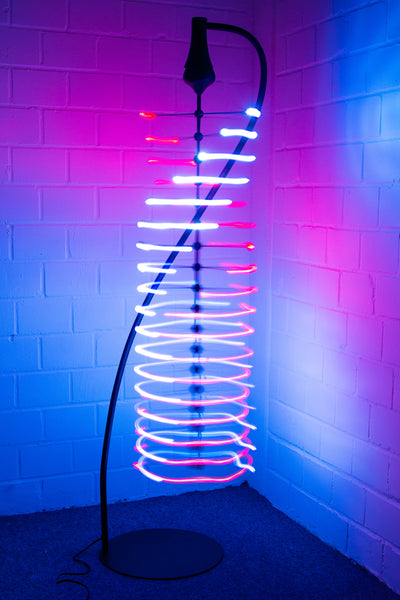 La lampe LED Spiral-Helix attire l'attention dans n'importe quelle pièce et si tes amis viennent te rendre visite et te demandent ce que c'est que cette installation lumineuse inhabituelle, tu peux aussi ajouter discrètement le mot Desoxy... à ton explication. -mot :)
