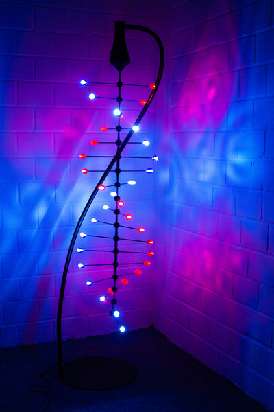 En effet, l'hélice LED lumineuse est conçue de telle manière qu'elle ressemble beaucoup au modèle structurel d'une molécule d'ADN. Si tu veux, les LED rouges représentent les cellules contenant de l'oxygène. Bases nucléiques et les LED bleues celles contenant de l'azote. Mais ce n'est pas tout : toutes les 45 secondes, un moteur intégré presque silencieux libère une impulsion d'énergie cinétique qui fait tourner la chaîne d'hélice sur elle-même, comme on aime le voir dans les images animées d'acide désoxyribonucléique (tu vois, c'est le mot !). En outre, ce mouvement crée de magnifiques effets de lumière sur les murs, surtout dans les pièces sombres. Regarde la vidéo pour te faire une idée.