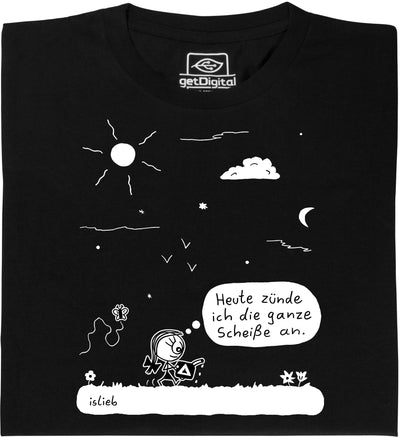 Nach außen bist du ein freundlicher und höflicher Mensch, lächelst die ganze Zeit und bist einfach lieb. Innerlich dagegen brodelt es und du möchtest manchmal einfach explodieren. Wenn du dieses Gefühl kennst, kannst du ihm mit dem islieb – Heute zünde ich die ganze Scheiße an T-Shirt Ausdruck verleihen. Es hilft dir Dampf abzulassen, ohne dabei Schaden anzurichten, den du hinterher bereuen könntest. Außerdem wirkt es angeblich wie eine Rüstung gegen nervige Menschen. Probier es doch mal aus! ;)