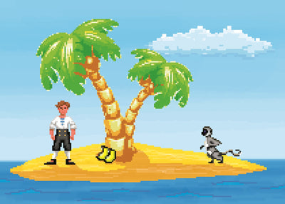 • Le motif représente le pirate Guybrush du jeu d'aventure le plus célèbre de tous les temps sur une île.