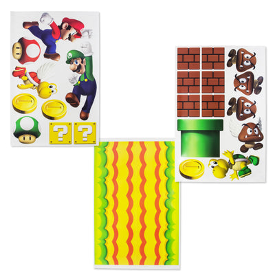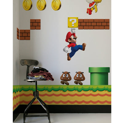 Les autocollants sont repositionnables. Pour vous donner une idée de la taille : Mario du set New Super Mario mesure environ 52 cm de haut. Les autocollants sont officiellement licenciés par Nintendo.
